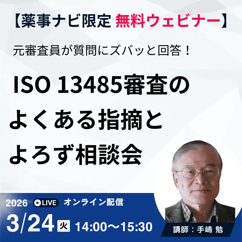 なお、本記事は2026年3月24日開催の無料ウェビナー「元審査員がズバッと回答!ISO 13485審査のよくある指摘とよろず相談会」における事前質問への回答を記事化したものです。